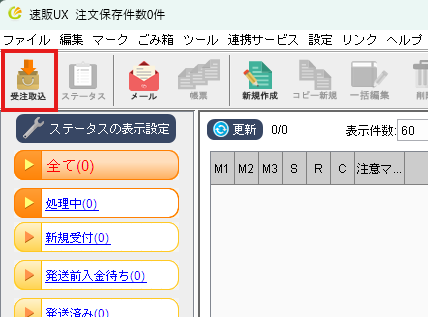 [受注取込]ボタンをクリックすることで、その時点での新しい注文を、「新規受付」ステータスに取り込みます。