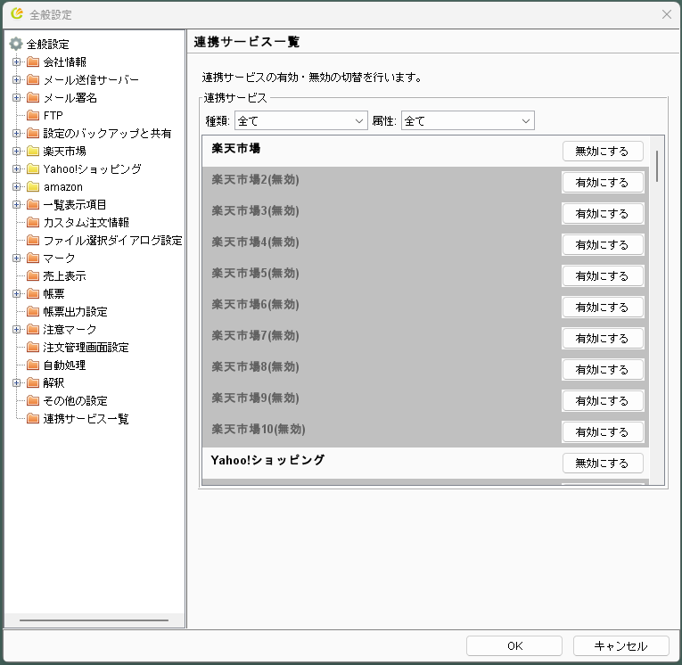実際にECサイトと連携するためには、連携サービスを有効化しておく必要があります。