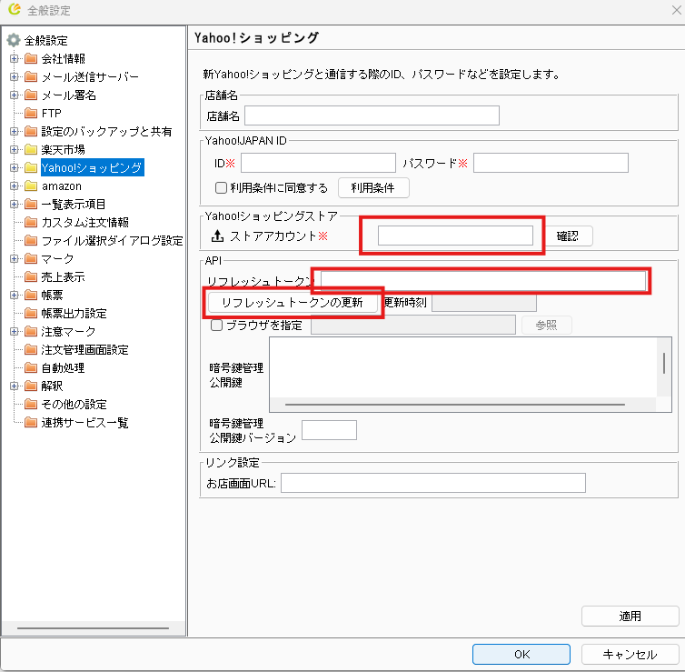 「全般設定」から、Yahoo!ショッピングの設定画面を開きます。